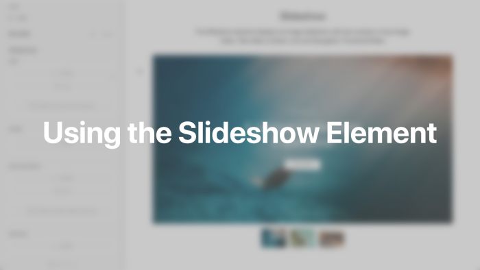 The Slideshow element displays an image slideshow with text overlays. The element itself has a Link field, while its items have Image, Video, Title, Meta, Content, Link and Navigation Thumbnail fields. Take a look at the slideshow element demo for a detailed showcase.